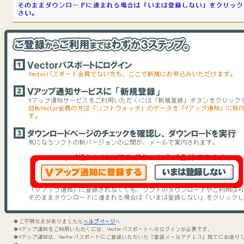 ダウンロードはVectorサイトでのダウンロードの為、Vectorサイトにてダウンロードします。