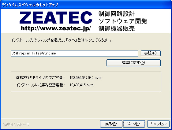 インストール先を変更したい場合は間違えないように直接入力もしくは参照より選択して変更してください。